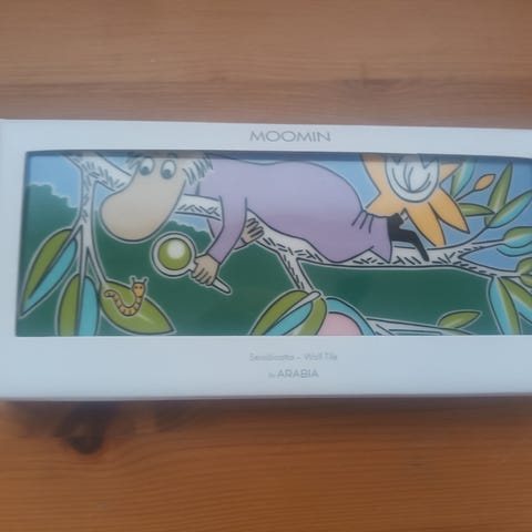 Muumi seinälaatta, Koristepuu, Muumimamma. Alkuperäispakkauksessa.