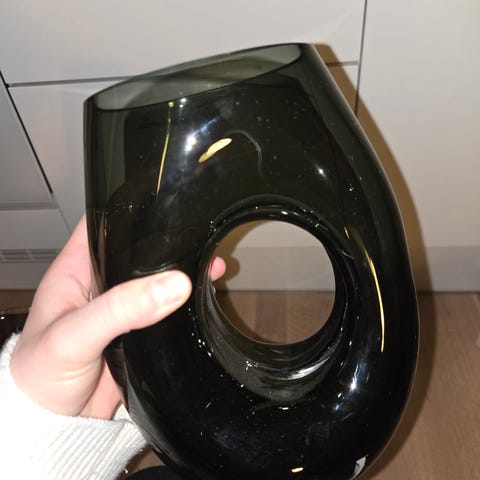 Kaunis muurlan lasi maljakko kulkeutuu saloo omien menojen mukaan
