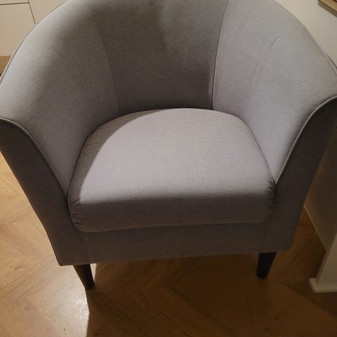 Harmaa nojatuoli. Ollut mallina hyllyssä. Eli käytännössä täysin käyttämätön.