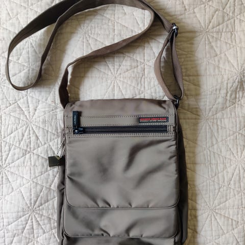 Siisti, kevyt hyvän värinen laukku , sopii kaiken kanssa . 32 x 22 cm. Edessä ja sisällä vetoketjutasku , sisällä lisäksi kaksi avotaskua