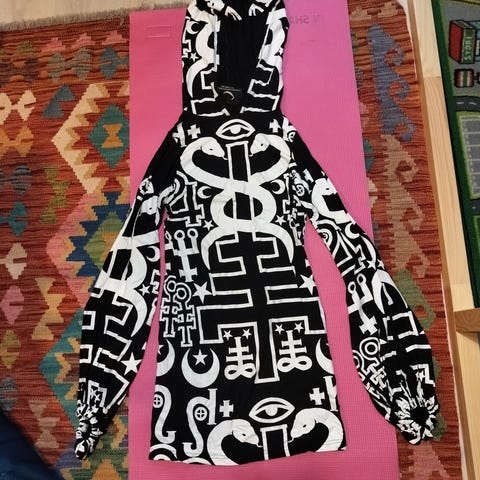 Upea Killstarin läpikuultava paitamekko. Leveät hihat, näyttävä kaulus. Edessä napit. 100% polyesteriä. Kainalo-kainalo noin 59cm. Niskasta helmaan noin 92cm. Hyvässä kunnossa, kameran valo hieman vääristä.