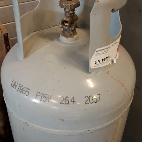 Teräksinen 33kg nestekaasupullo.pullo on tyhjä tai voi olla ihan hivenen vielä kaasua.