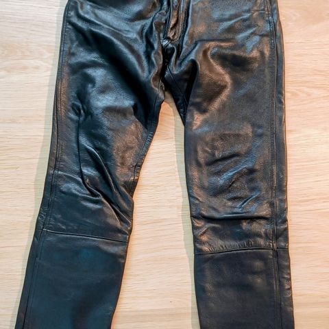 Laatu ajohousut pehmeää oikeaa nahkaa. Noin 93/70 vyötärön/lahkeen mitalla.