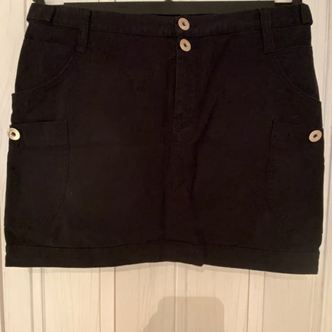 Erinomaisessa kunnossa oleva kitinvärinen Peak Performancen puuvillahame koossa M. Mitat: vyötärö 82, vyötärö-helma 72. Edessä halkio ja sivussa vetoketjutasku kts. kuvat.