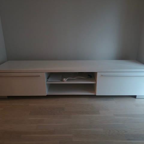 Ikean musta TV taso pyörillä. Melko hyvässä kunnossa, ihan pientä käytön jälkeä näkyvissä.