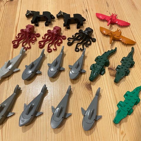 Myydään käytetty Lego pöllöt sekä kanat. Suurimmat ovat hyvä kunnossa, ja osa on jotain kuluneet/jälkiä.