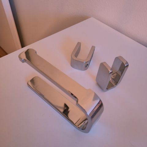 Myydään Abloy Manda FH525 wc-paperiteline. Ruuvikiinnitys, pakkaus sisältää kiinnitystarvikkeet. Materiaali: alumiini. Pinnoitus: hopea-anodisoitu. Koko: 162 x 85 x 35mm.