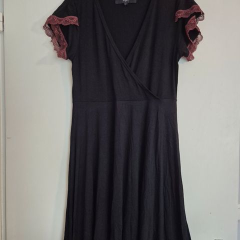 Maksimekko tyyppinen, mutta edessä on lyhyempi ja takaa pidempi. Todella mukavaa kangasta. Vain sovittu.