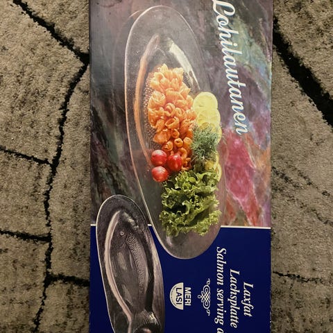 Tarjoilulautanen Unikko, Riihimäen lasi, halkaisija noin 32 cm. Vähän käytetty, täysin ehjä.