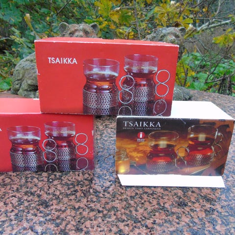 Käyttämättömät pakkauksessaan säilyneet snapsilasit.