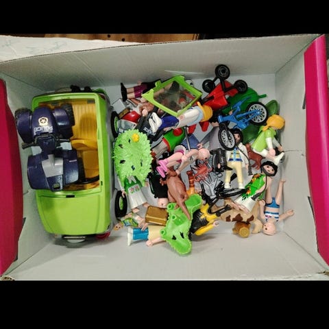 Laatikoittain 1980-1990 luvun Playmobileja, autoja, veneitä, merirosvolaiva, vankkurit yms. Laatikollinen ukkoja. Pakkausten kannet pääosin tallessa eli voit koota yhteenkuuluvat osat. Myyn kokonaisuutena, en yksittäin. On niin iso määrä ettei mahdu yhteen pakettiin