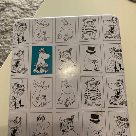 Kuvan Muumi rasia esim. teepussien säilytykseen.