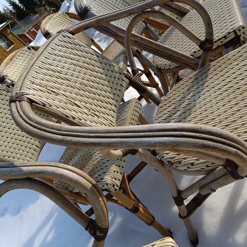 Myydään pöytä ja 2tuolia pöydästä yksi rima irti maalit kuluneet muuten ehjä