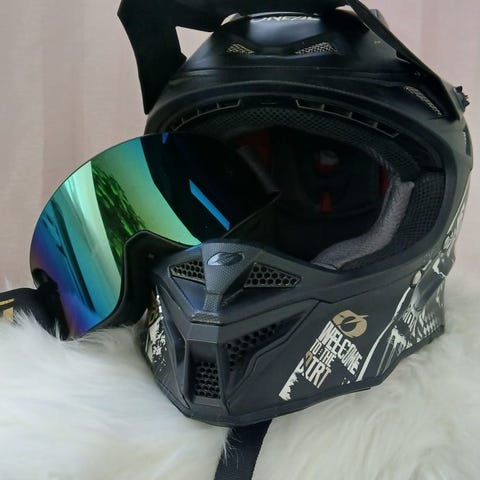 M kokoinen Yoko motocrosskypärä + lasit. Mukaan myös suojapussi kypärälle.