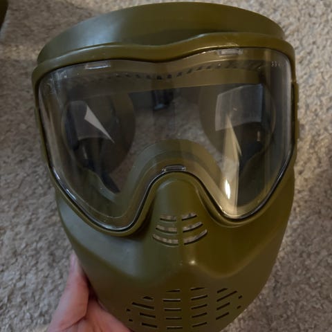 Mukaan tulee suojalasit (kirkas) jossa on pieni osuma mutta ei haittaa näkyvyyttä !