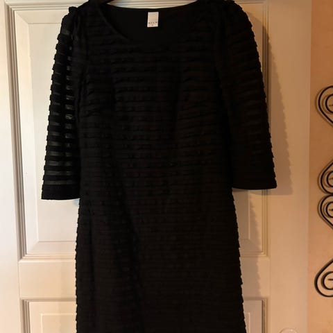 Uudenveroinen juhlamekko. Takana joustava rypytys. Olkaimeton, mutta olkaimille on lenkit.