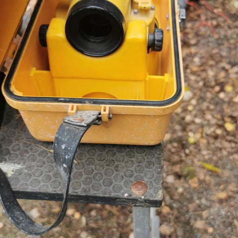 Setti sisältää myös Topcon-kolmijalan, sekä 5m korkolatan.