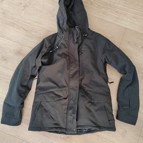 Koko 40 (Olen itse 38 ja tykkäsin silti, koska vyötärönympärystä voi säätää.). Vastaa kokoaan. Teipatut saumat, tuplataskut (auki päältä sekä sivuilta).
