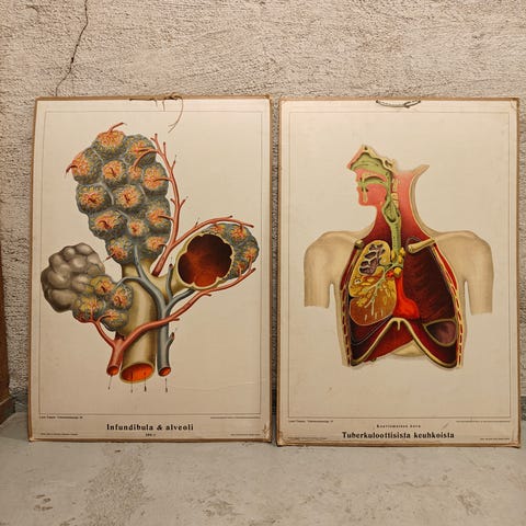 Opetustaulut Benares, muurahaiskeko ja järvikaloja, kunto vaihteleva. Tarjoa yksittäisistä