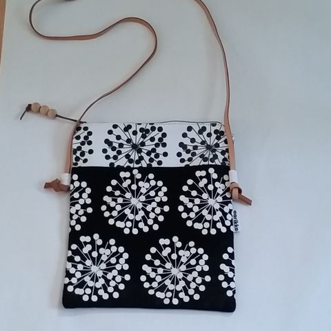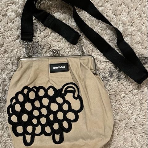 Käyttämätön Aarikan Tulitus vetoketjulaukku. Sisällä valkoinen vuori ja vetoketjutasku, säädettävä olkahihna nahkaa. Ulkomitat n. 28 x 24 cm.