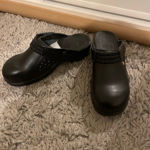 Jo enemmän käytetyt turvakärkikengät. Pohjat, tarrat, kuminauhat kunnossa mutta pintanahka rikki ja pohjalliset puuttuu.