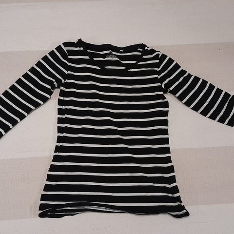 Siisti paita, ei kulumaa tai haalentumaa. Oletan, että materiaali on puuvilla ja mukana elastaania. Materiaalilappua ei ole.