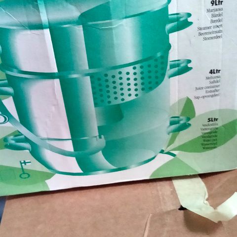 Mehustin 9 litran marjatilavuudella. Materiaali 18/10 ruostumaton teräs. Melkein kuin uusi, vain vähän on käytetty. On säilytetty lämpimässä varastossa alkuperäisessä pakkauksessa. Käyttöopas löytyy myös.