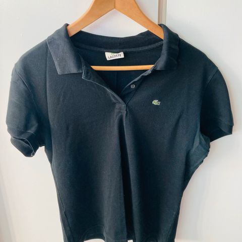 Hyväkuntoinen ja siisti pitkähihainen musta pikee. Koko Lacosten tiukempi ranskalainen mitoitus, eli 38 vastaa enemmänkin kokoa 36.