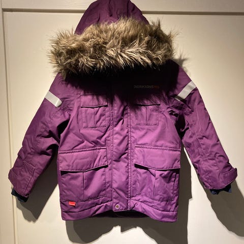 Didriksons lasten takki, koko 90 (reilua kokoa meillä oli käytössä vielä 104 koossa), vaalea hieman oranssi väri. Siisti, mutta käytetty kunto ja hieman tummentumia ja muutamia jälkiä (katso kuvat), mutta ehjä. Ainostaan takin vetskarissa oleva nauha hieman rispaantunut. Mielestäni siistissä kunnossa vielä ja huomiot huomioitu hinnassa. Meillä oli pääosin käytössä ns. kauppatakkina.