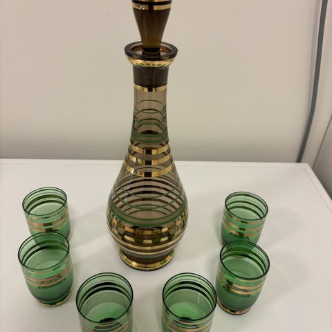 Erikoinen juomasetti. Karahvi ja 4 lasia.