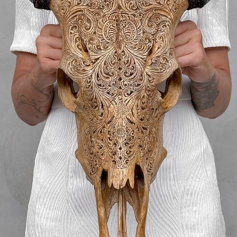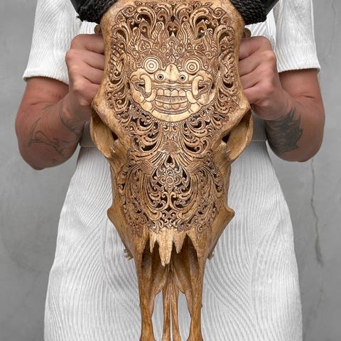 Ei varaustarjousta - aito harmaa kaiverrettu lehmän pää - perinteinen balilai