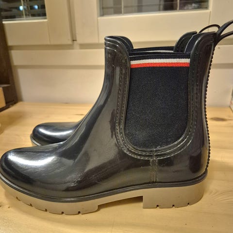 Hyvässä kunnossa olevat Tommy Hilfiger kumisaappaat koossa 37. Väri musta/tumman sininen, hailakka skottiruutukuviointi. Varren 1/2 ympärysmitta 18 cm. Toridiili tai perinteinen postitus 8,80 eur (Matkahuolto).