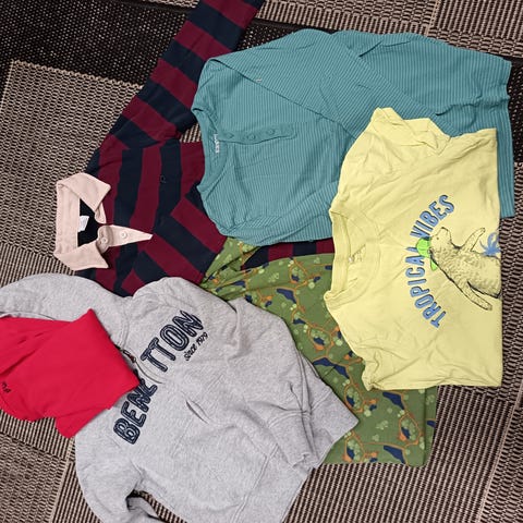 Myydään vaatesetti, jossa yksi eläinaiheinen H&M collegepaita, Kappahl kuviollinen huppari ja Kappahl neulepusero. Kaikkien koot 122/128 cm. Hupparissa pieni väritahra. (Katso toinen kuva.)