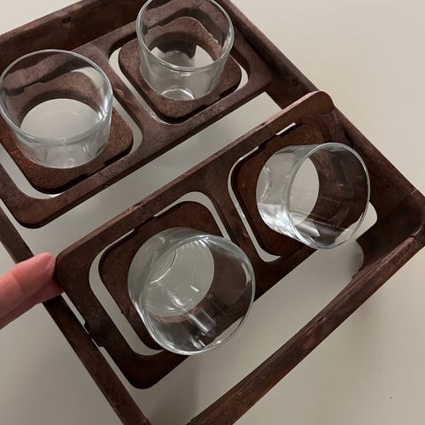 Myynnissä akryylinen 6 lasin lasiteline esimerkiksi vene- tai matkailuautokäyttöön. Mitat on 32,5 x 20 x 9,5 cm. Pitää lasit tukevasti paikoillaan ja estää niitä kilisemästä toisiaan vasten. Telineen pohjassa on silikonitapit, jotka estävät telineen liukumisen. Teline voidaan purkaa osiin säilytystä varten ja sitä voi käyttää myös tarjoilemiseen. Telineitä on 2 kpl, ilmoitus koskee yhtä tarjotinta, mutta voit ostaa myös molemmat maksamalla toisesta saman hinnan kuin tämän ilmoituksen hinta. Olleet käytössä, mutta ovat erittäin siistit.