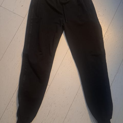 Vähän käytetyt mustat slimfit collegehousut. Vyötäröllä kiristys, vetoketjulliset sivutaskut, lahkeissa resori. Ei haalistumia, eikä nukkaa.