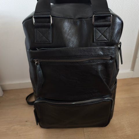Reppu, joka on valmistettu tekonahkasta. Sopii naisille. Reppu on tummanharmaa ja siinä on koristeellisia yksityiskohtia sekä useita vetoketjutaskuja. Käytännöllinen valinta arkeen tai matkustamiseen.