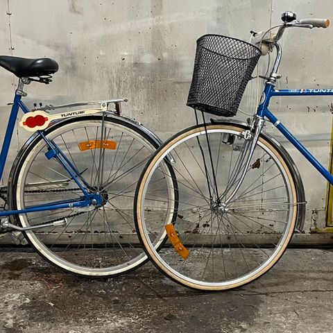 Ikäisekseen hyväkuntoinen peruspyörä. Renkaat hyvässä kunnossa ja vaihteet toimivat. Lukko on rikottu ( ostettu kuolinpesästä ja avainta ei löytynyt ). Hyvä peruspyörä kaupunkiajoon, rullaa asfaltilla kevyesti ja mukava myös soralla. Ajoasento 180cm. pituiselle miehelle hyvä.