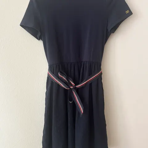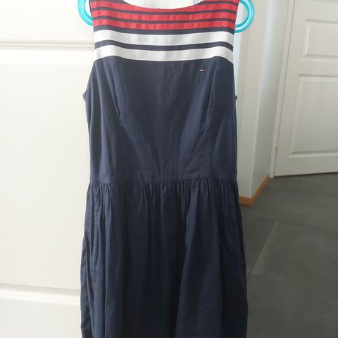Tummansiniraidallinen mekko, erinomaisessa kunnossa ja siististi pidetty. Napakkaa kangasta ja menee sekä arkisempaan että juhlavampaan käyttöön.