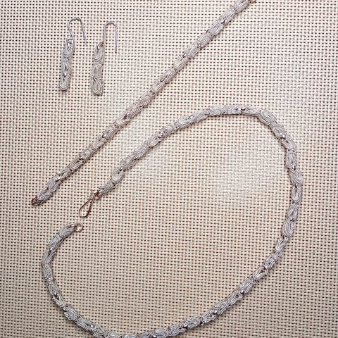 Tämä korusetti on valmistettu korukivestä ja hopeoidusta materiaalista, ja se on suunniteltu erityisesti naisille. Sopii monenlaisiin tilaisuuksiin ja asukokonaisuuksiin. Ostettu Dopp liikkeestä.