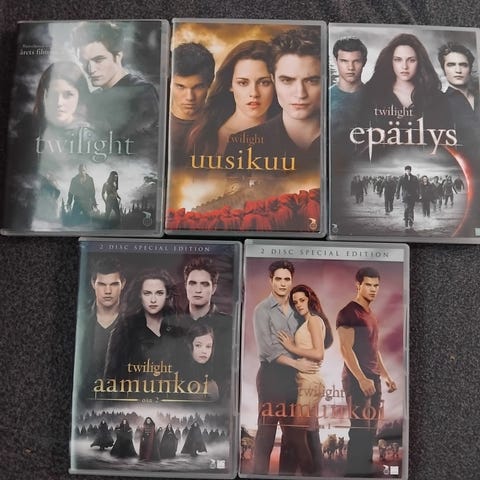 Myydään kuvassa näkyvät Twilight-elokuvasarjaan kuuluvat dvd:t. Toimii ongelmitta.