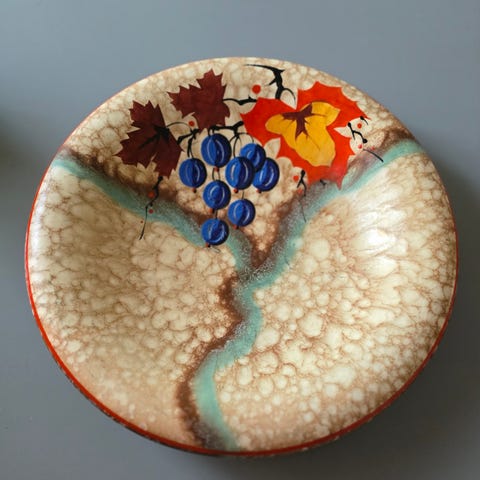 Avainsanat: konakova, coloroll, lautanen, kivitavara, astiat, retro, vintage, neuvostoastiasto, englanti, kattaus, koristeellinen, vanha astiasto, posliini, hedelmäkuvio, kukkakuosi, keräily, sekalaiset astiat, kovakorvainen