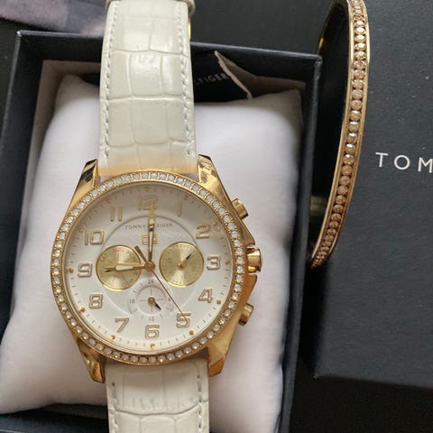 Hilfigerin kello, ei ole paljon käytetty kun jäi pieneksi ja lisäpalat oli hukkuneet. Sisämitta noin 15 cm, tyttärellä meillä ollut. Lisäpaloja varmaan saa vielä, edullisesti uuteen kotiin