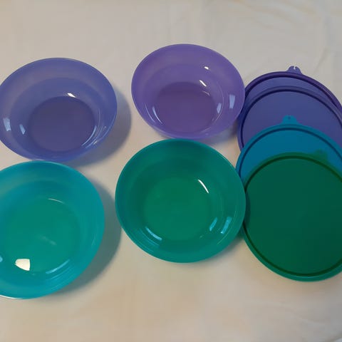 Tupperware. Kauniit punaiset Prisma Kulhot tilavuus 2 L ja 3,5 L mukana tiiviit kannet muovikristallia kauniit tarjoilussa hyvät kuljetuksessa ja säilytyksessä käyttämättömät hinta yht 50 € kulkeutuu sovittaessa lähialueelle + postitus 10 €