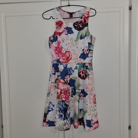 Kukallinen pitkähihainen joustava mekko. Koko S (iso Koko tai enemmän M). Nouto tai postitus tai toridiili. Polyesteri ja elastaani. Mustlla pohjalla beigen värisiä kukkia.