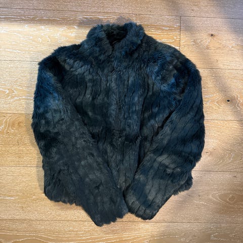 Veromodan musta karvatakki, napit ja taskut. Koko M. Sopii esim juhliin