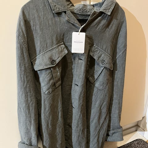 Tyylikäs ja rento kevyt takki. Oliivinvihreä, aito väri viimeisessä kuvassa. 54% pellavaa, 46% puuvillaa. Koko 4 tarkoittaa kokoa L, mutta istuu kuin XL