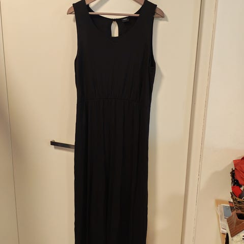 Musta mekko jossa v-pääntie ja pienet perhoshihat. Koko L.