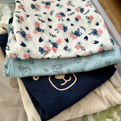 Käyttämättömät lyhythihaiset bodyt, 5 kpl, kokomerkintä 36M, arviolta 92. Säilytyksestä rypyssä, ei edes käyttöönottopesty.