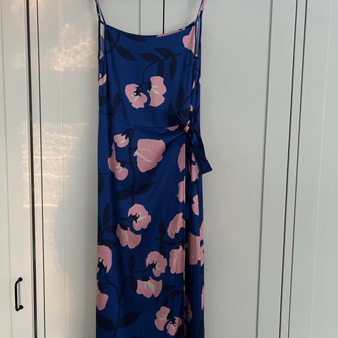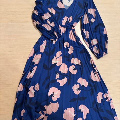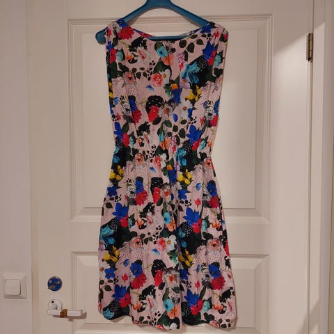 Sininen Uhanan Adore-mekko valkoisilla kukilla. Kerran pesty. Reiluhko koko, sopii hyvin xs-s kokoiselle myös.