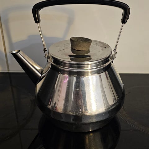 Tummunut sisältä, kahvassa käytön jälkiä, ei lommoja.
